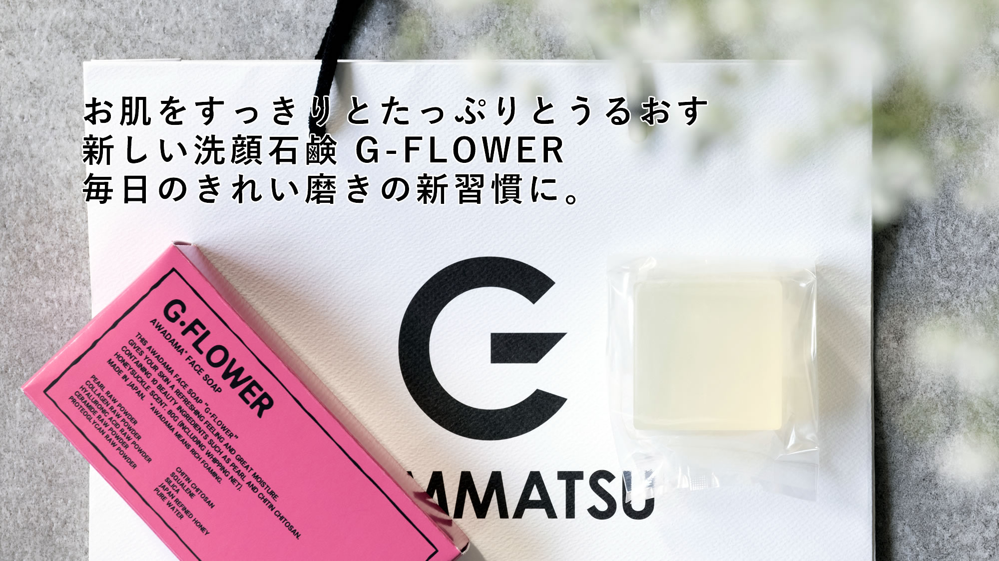 真珠やキチンキトサンなど10種類の美容成分を配合し、独自の「泡玉パックケア」で洗顔いただくことで、お肌にうるおいとキレを。あなたのきれい磨きの新習慣に、ピンクパッケージの泡玉美容石鹸 ”G-FLOWER”。