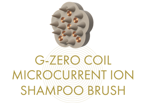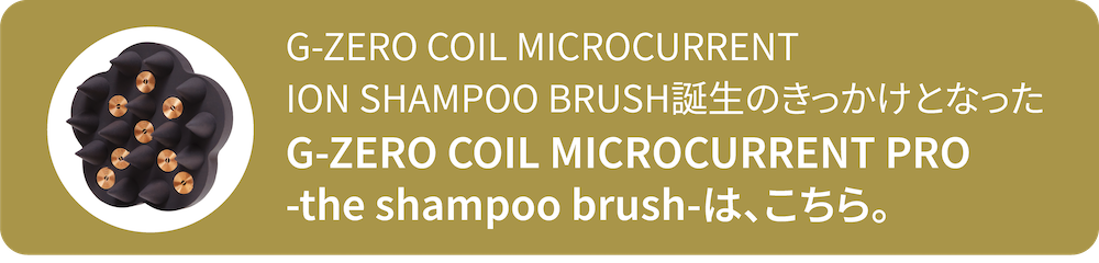 G-ZERO COIL MICROCURRENT ION SHAMPOO BRUSHは、電磁波や静電気を吸収し、いま、美容、健康、スポーツの世界で大変注目を集める「マイクロカレント(微弱電流)」を自然発生する“G-ZERO COIL(直径8mmタイプ×8)”を搭載した、マイクロカレント・シャンプーブラシG-ZERO COIL MICROCURRENT PRO -the shampoo brush-をベースに、シリコン本体にマイナスイオン鉱石を配合したことでマイナスイオン効果を高め、さらにシリコンの強度もパワーアップさせました。また、シリコン素材の強度をアップしたことにより、剣先部分が摩耗しにくくなりました。シャンプーの泡立ちを、よりクリーミーに。髪の絡みも抑え、スムーズで心地いい洗髪を。『マイナスイオン洗い』で、その髪を、しっとり、うるツヤ髪へと仕上げていきます。