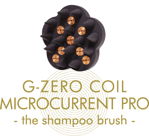 G-ZERO COIL MICROCURRENT PRO - the shampoo brush - は、 頭皮へのマッサージ効果にすぐれた造形、素材、硬度だけでなく。 電磁波や静電気を吸収し、美容、健康、スポーツの世界でいま、 注目を集める「マイクロカレント(微弱電流)」を自然発生する “G-ZERO COIL(直径8mmタイプ×8)”を搭載した、マイクロカレント・シャンプーブラシです。 美容師を驚かせたのは、マイクロカレントを自発する“G-ZERO COIL”の働き。 泡の粒子をファインバブル化させたクリーミー泡により、洗浄力を向上させ、髪を摩擦から守り、絡みも抑え、 さらにキューティクルの補修までも。 髪と頭皮に滑らかに、心地よくアプローチし、その髪を、「うるツヤ髪」へととのえていきます。